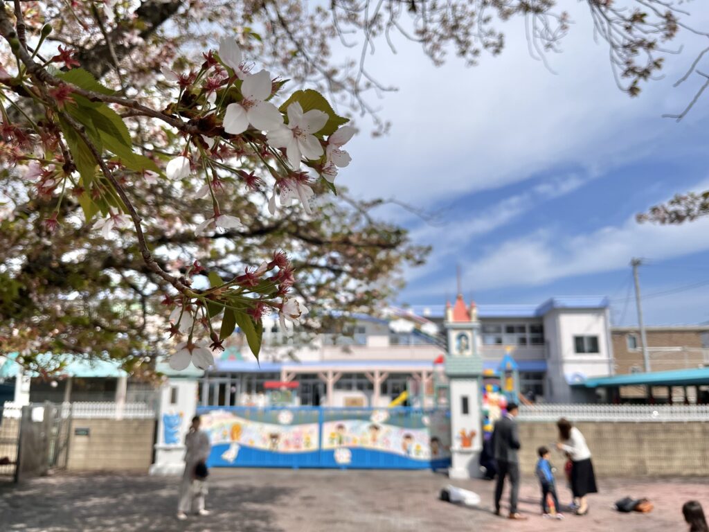 今年は桜の開花が遅めであったため、幼稚園の桜も葉桜でしたが